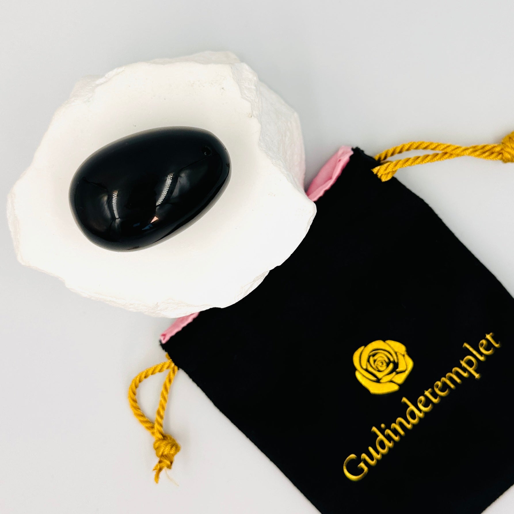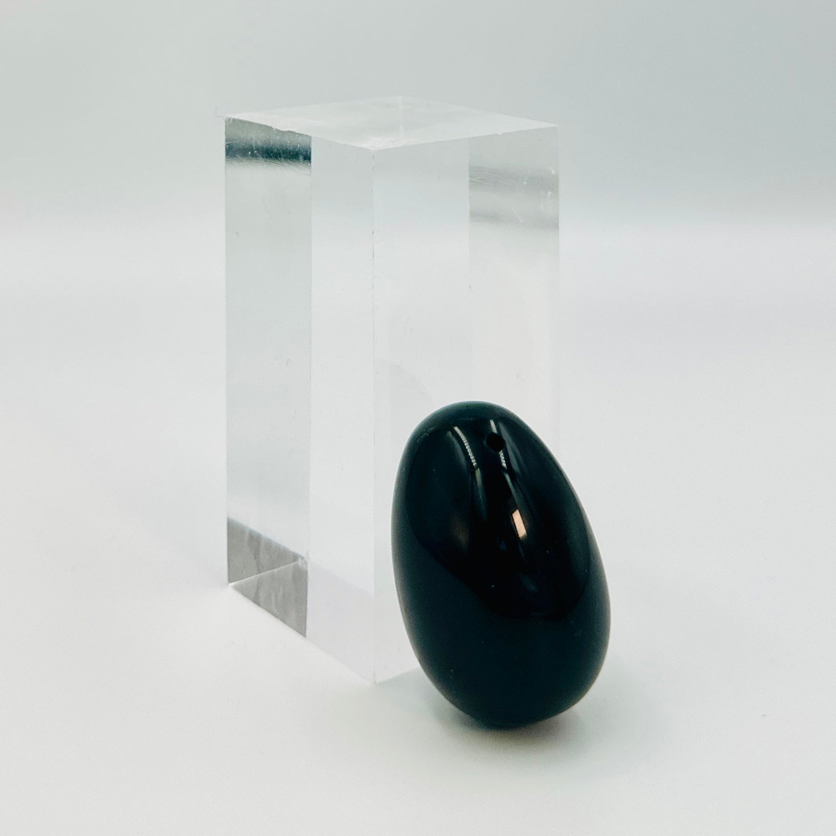 - A genuine Black Obsidian Yoni Egg, drilled through the thin end of the egg so you can insert a string for advanced exercises or for easy removal