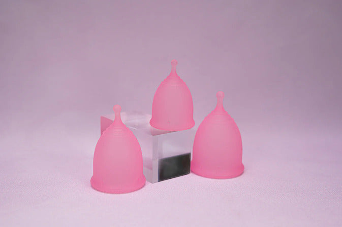 • A menstrual cup in your preferred size, either x-small, medium-large or large. Also choose between the color transparent pink or rainbow