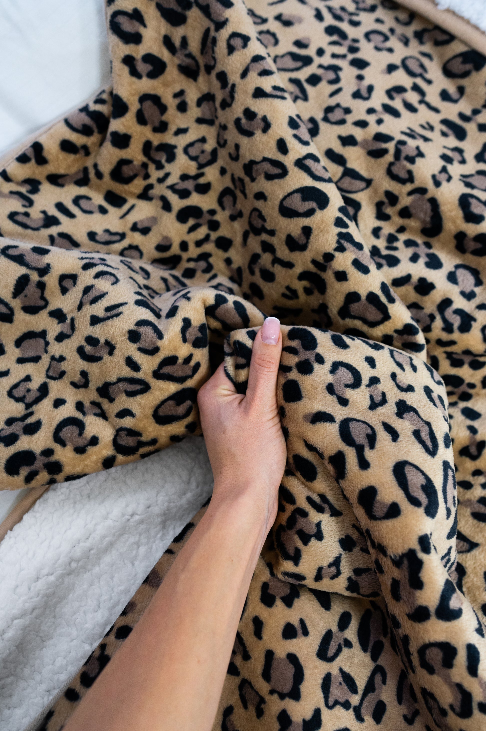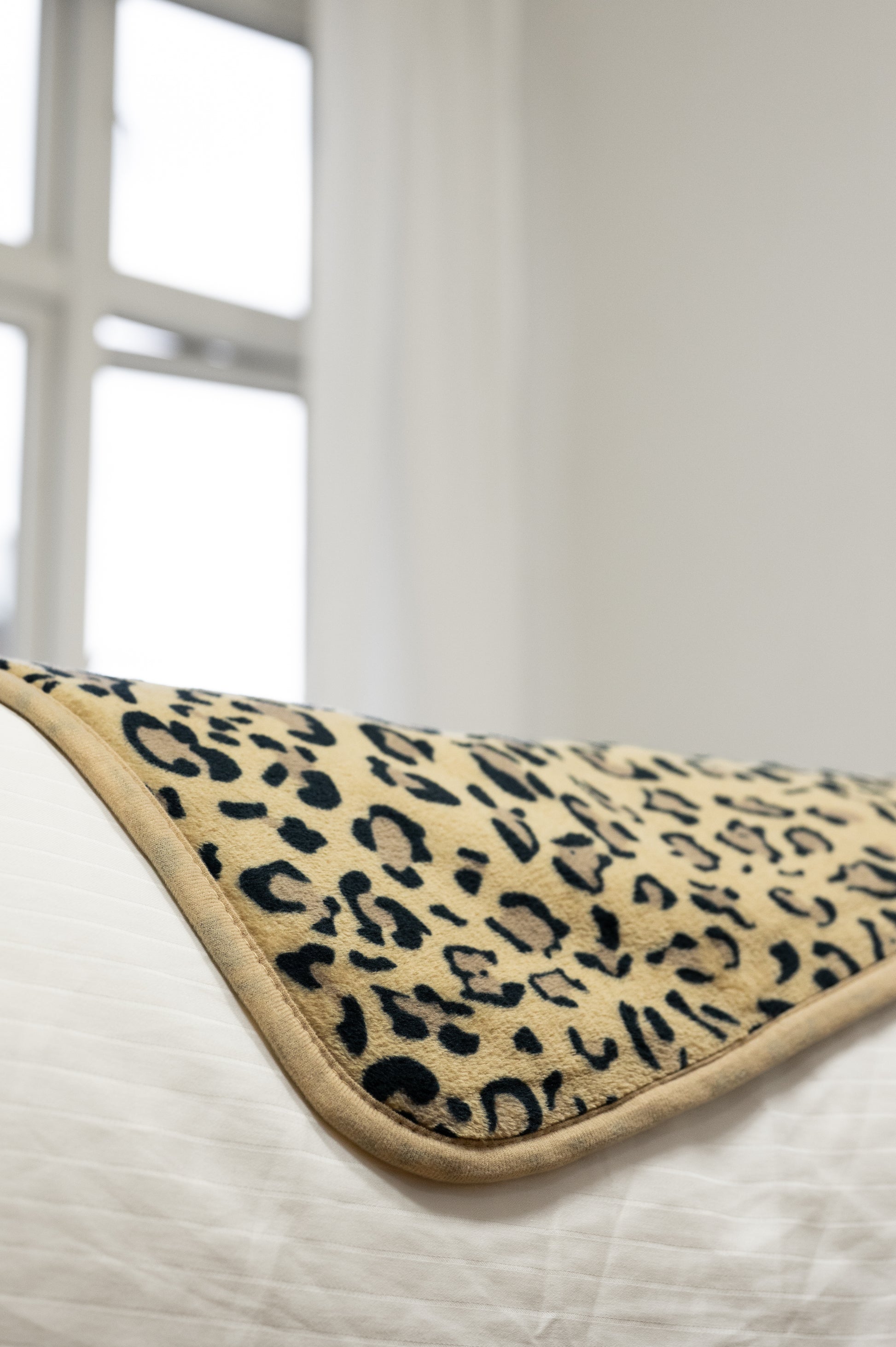 • Luxurious Comfort: Lying naked on the blanket is pure luxury for the sensitive skin on the buttocks, thighs, lower abdomen, and vulva. With soft white fleece on one side and silky leopard velour on the other, you’ll want to snuggle up in it.